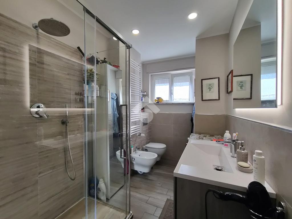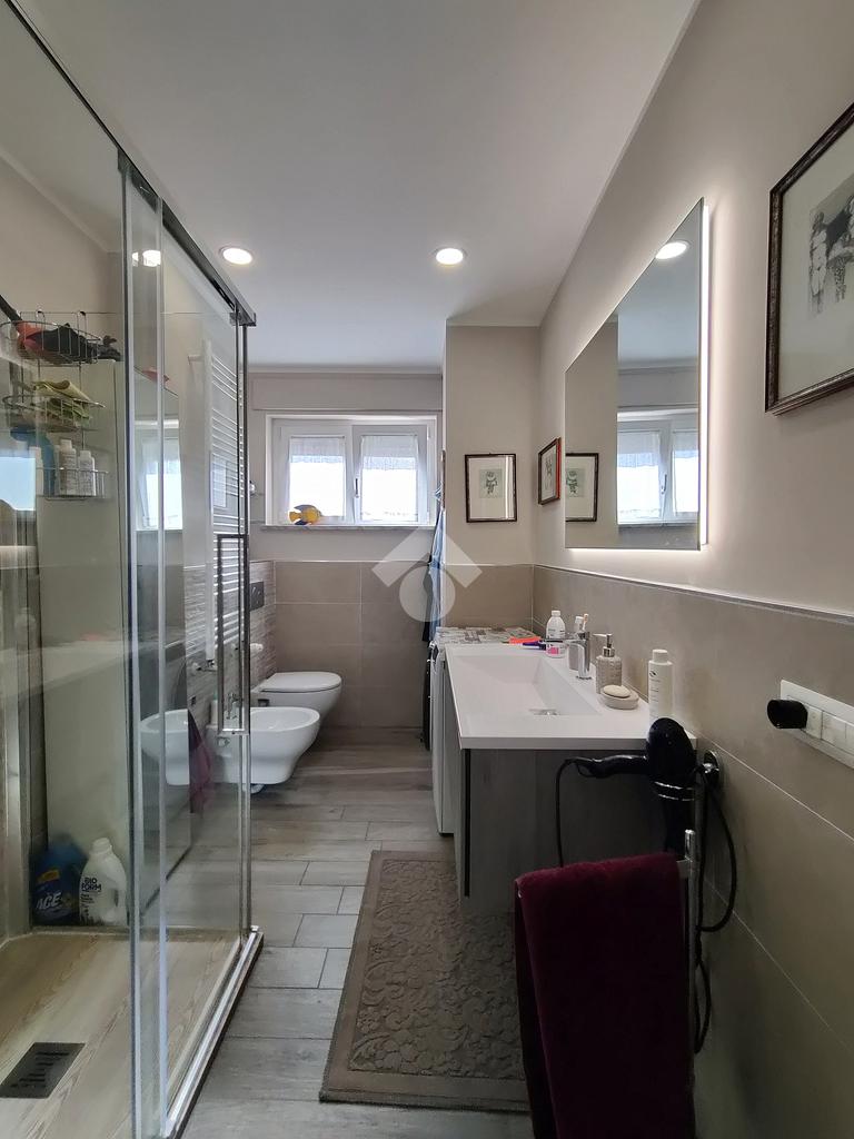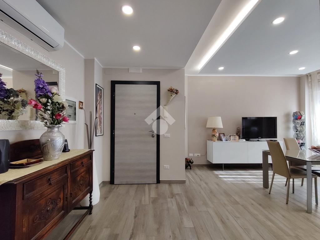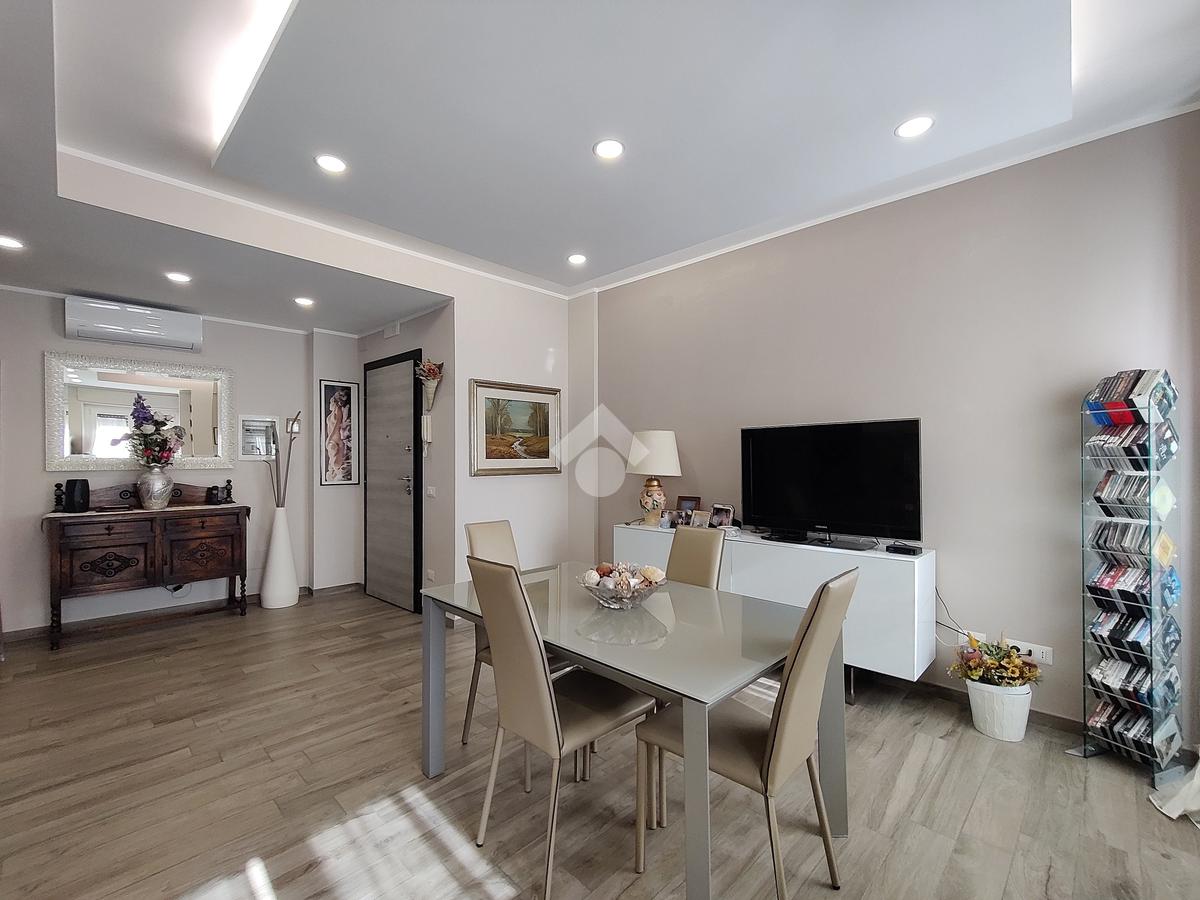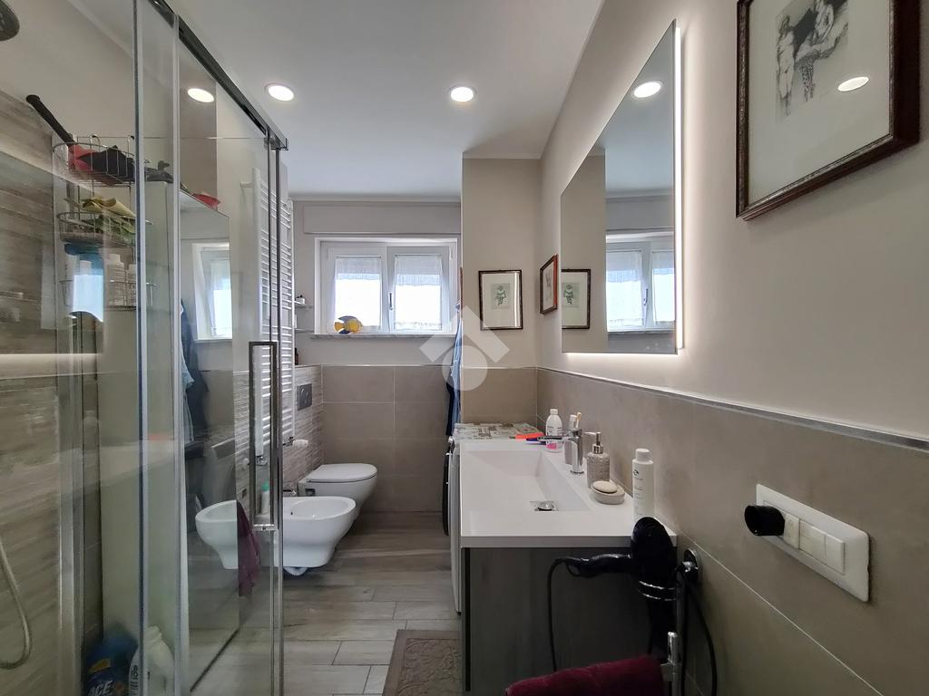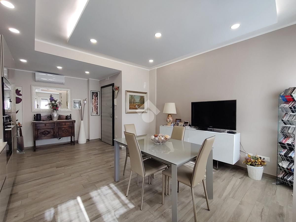 L'appartamento presenta finiture di qualità, tra cui infissi Finstral in PVC, avvolgibili elettrici, zanzariere, tende da sole, pavimentazione in gres porcellanato effetto parquet uniforme in ogni stanza, climatizzatori in tutti gli ambienti, riscaldamento autonomo con caldaia a condensazione, porta blindata, porte interne in legno laccato e controsoffitti con illuminazione a faretti integrati.