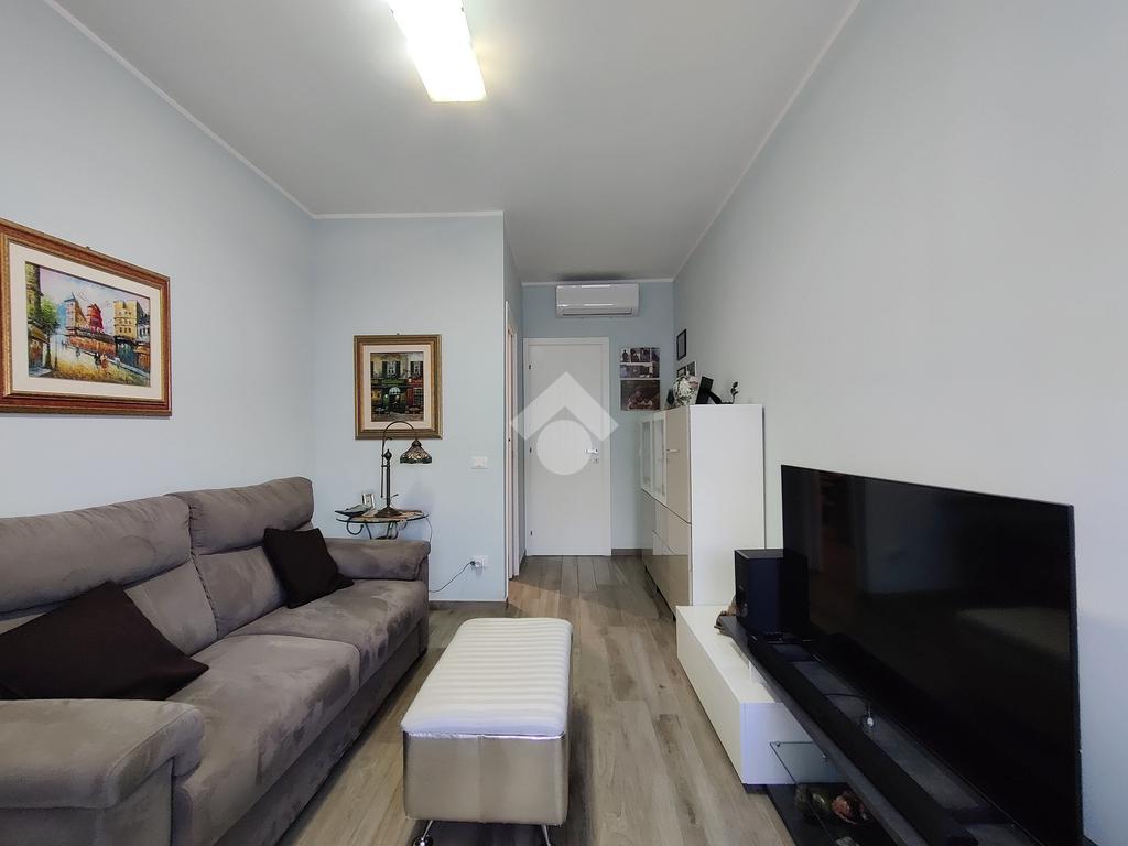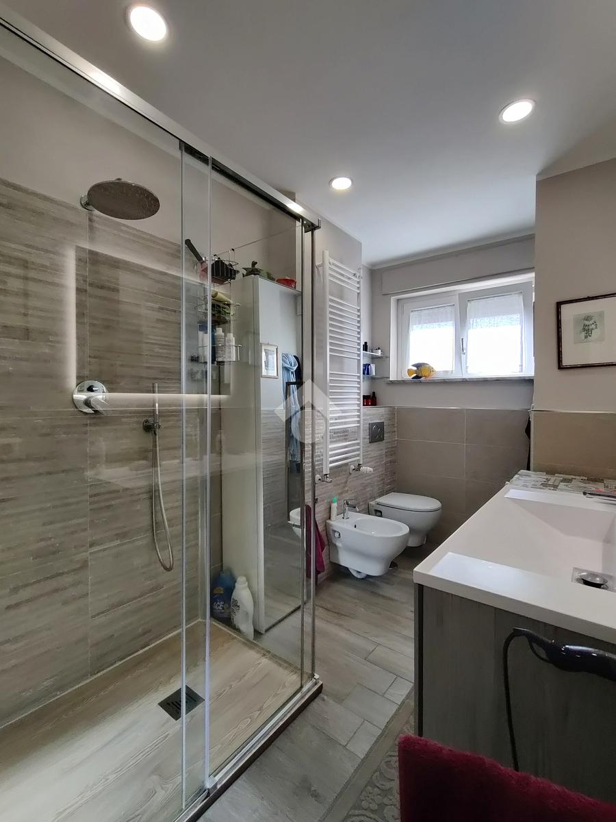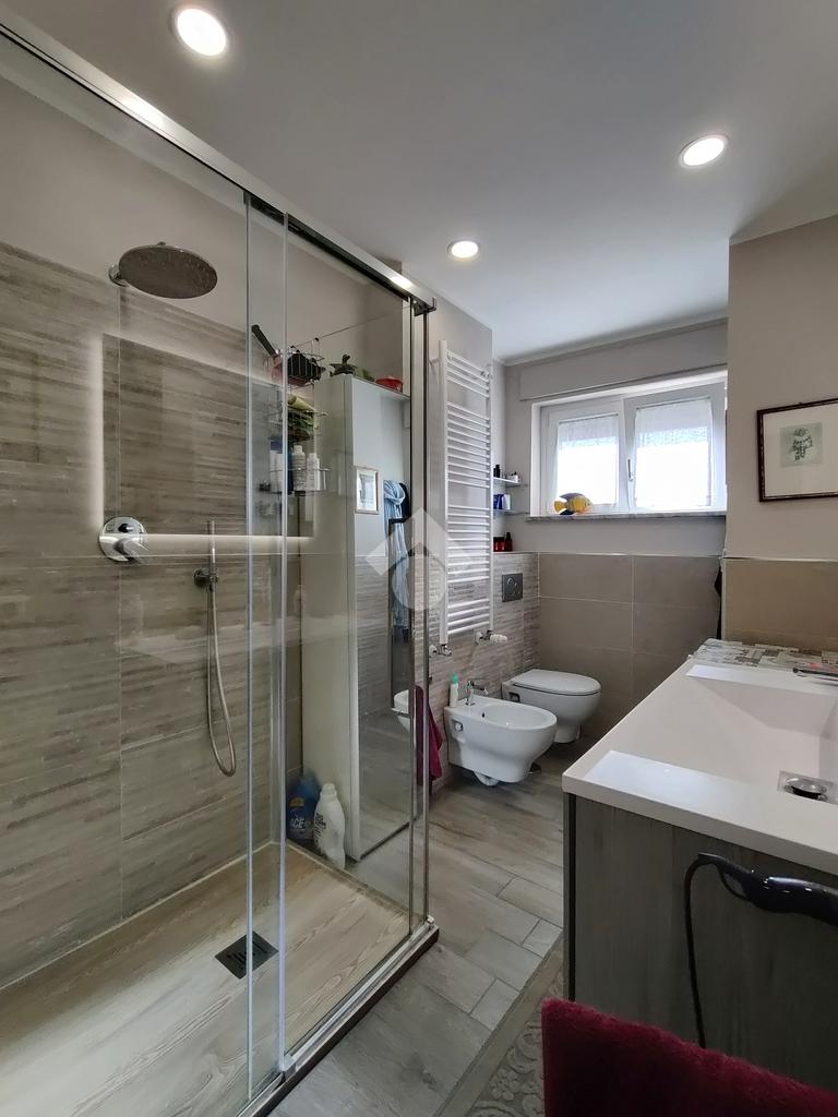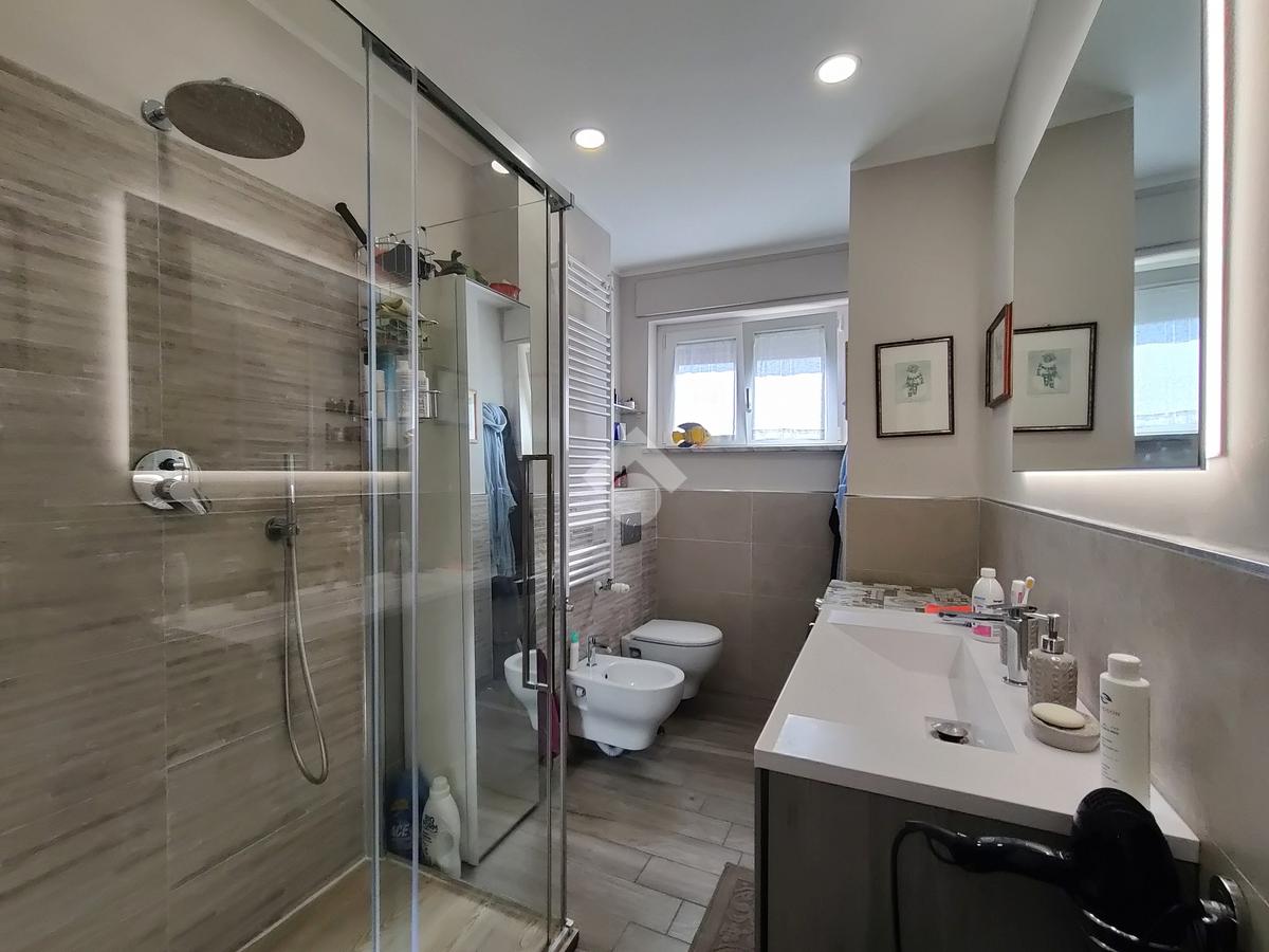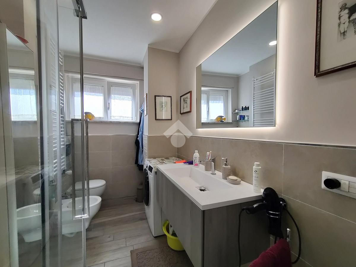L'appartamento presenta finiture di qualità, tra cui infissi Finstral in PVC, avvolgibili elettrici, zanzariere, tende da sole, pavimentazione in gres porcellanato effetto parquet uniforme in ogni stanza, climatizzatori in tutti gli ambienti, riscaldamento autonomo con caldaia a condensazione, porta blindata, porte interne in legno laccato e controsoffitti con illuminazione a faretti integrati.