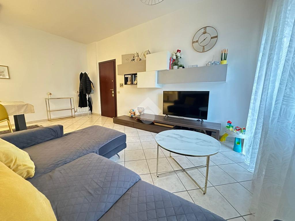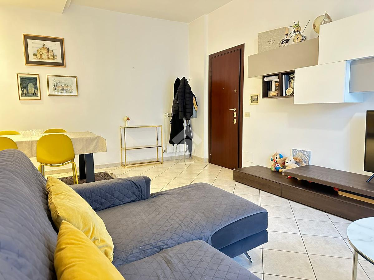 Appena varchi la soglia, ti avvolge un luminoso soggiorno con sala da pranzo, perfetto per i momenti di relax e convivialità. Da qui si accede al balcone, da condividere con la cucina: un ambiente aperto ma allo stesso tempo riservato, ideale per chi ama vivere la casa in modo pratico e confortevole.